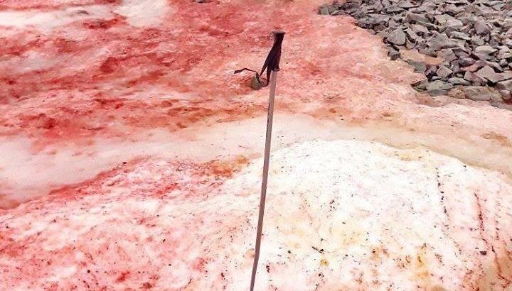 形成西瓜雪的極地雪藻會使融冰速度增加。圖片來源:「Національний антарктичний науковий центр」臉書