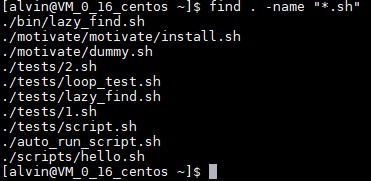 所以,這裏就偷個懶,介紹最基本的,根據文件名查找文件的方法。假如我們想搜索當前目錄(及其子目錄)下所有 .sh 文件,可以這樣搜索: