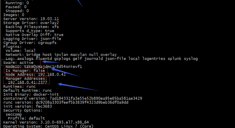 docker swarm 在我們安裝好docker時就已經安裝好了,我們可以使用docker info來查看