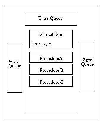 如下圖,線程通過入口隊列(Entry Queue)到達訪問共享數據,若有線程佔用轉移等待隊列(Wait Queue),線程訪問共享數據完后觸發通知或轉移到信號隊列(Signal Queue)。