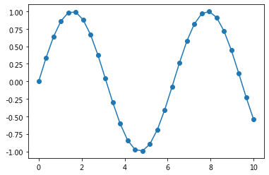 plt.plot(x, np.sin(x), '-o');