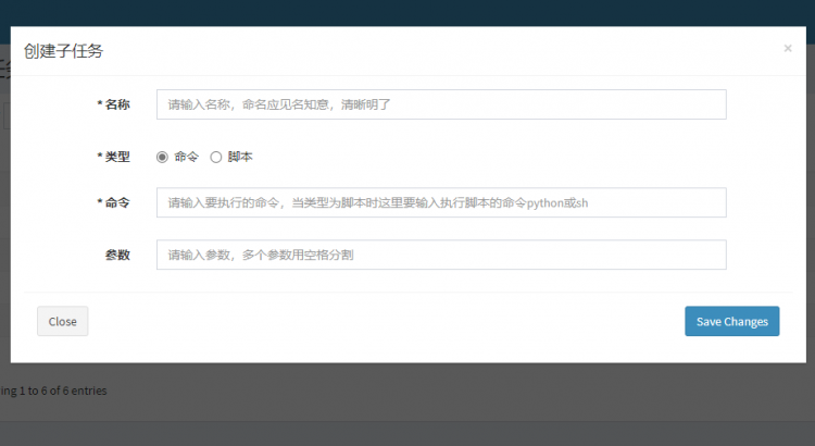 理論上不限制腳本的類型,可以是shell、python或者go之類的,前提是系統上有腳本的運行環境,當命令或者腳本有參數的時候可以在參數列寫上參數名稱,然後在最終執行任務的時候需要傳遞具體參數的值過來