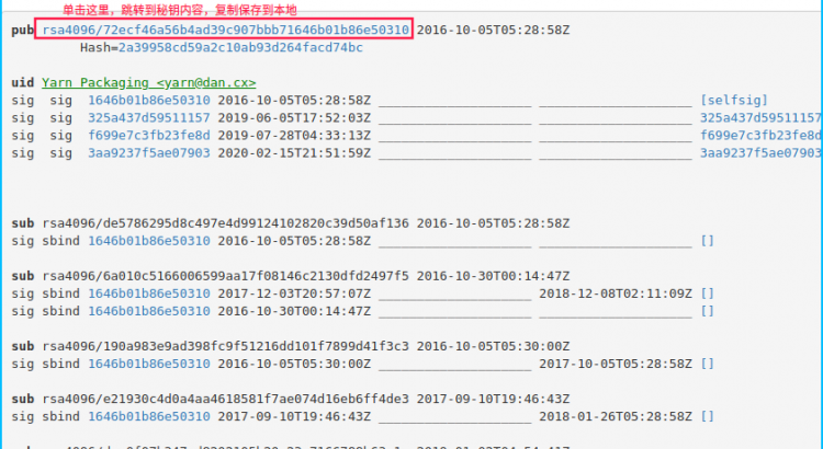找到該軟件安裝方法中添加密鑰的方式(如yarn的安裝步驟一),再次執行即可