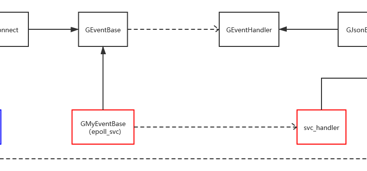 黑色標註的是框架提供的類,紅色是服務端派生的類,藍色是客戶端派生的類,其實 GMyEventBase 的唯一作用就是將 svc_handler 與 clt_handler 分別引入各自的框架中,
