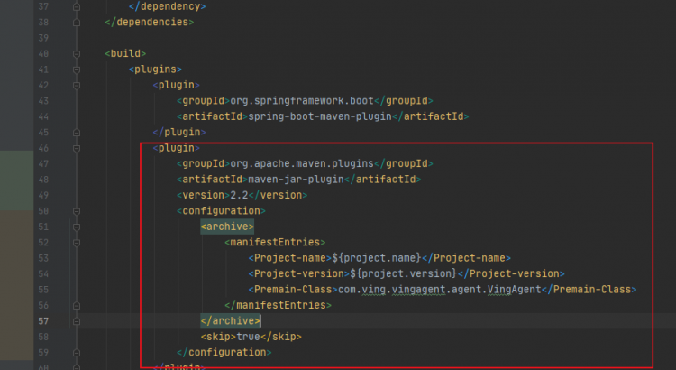 4.1.2、 第二步:在啟動項目的時候,在jvm參數中添加 -javaagent: *\ving-agent-0.0.1-SNAPSHOT.jar (在jvm上先加載agent包)