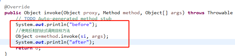 //使用反射的放式調用si(被代理類)目標方法